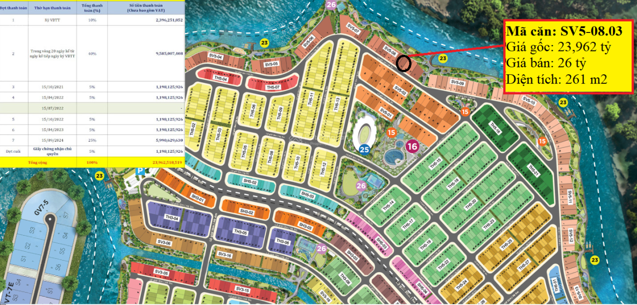 - Bàn giao: dự kiến Tháng 12/2023 đến tháng 12/2024