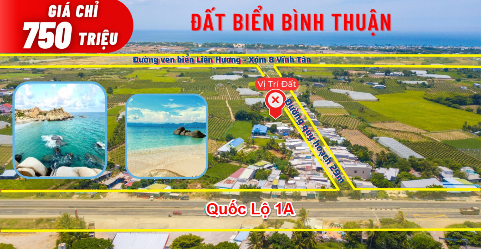 Chỉ 750tr sở hữu ngay lô đất biển Tuy Phong - Bình Thuận full thổ cư, đường 29m kết nối cao tốc Vĩnh Hảo