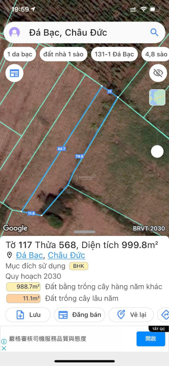 1 sào Đá Bạc Châu Đức giá rất mềm chỉ 700tr