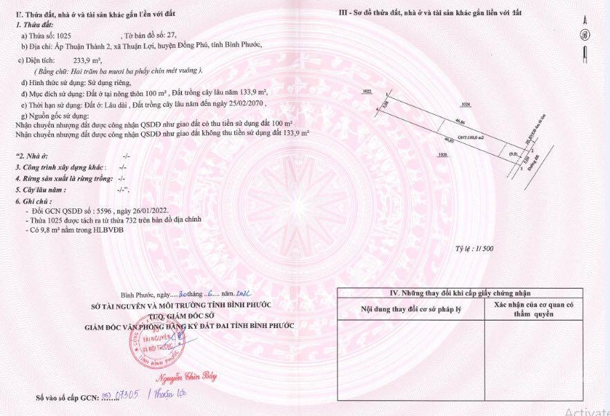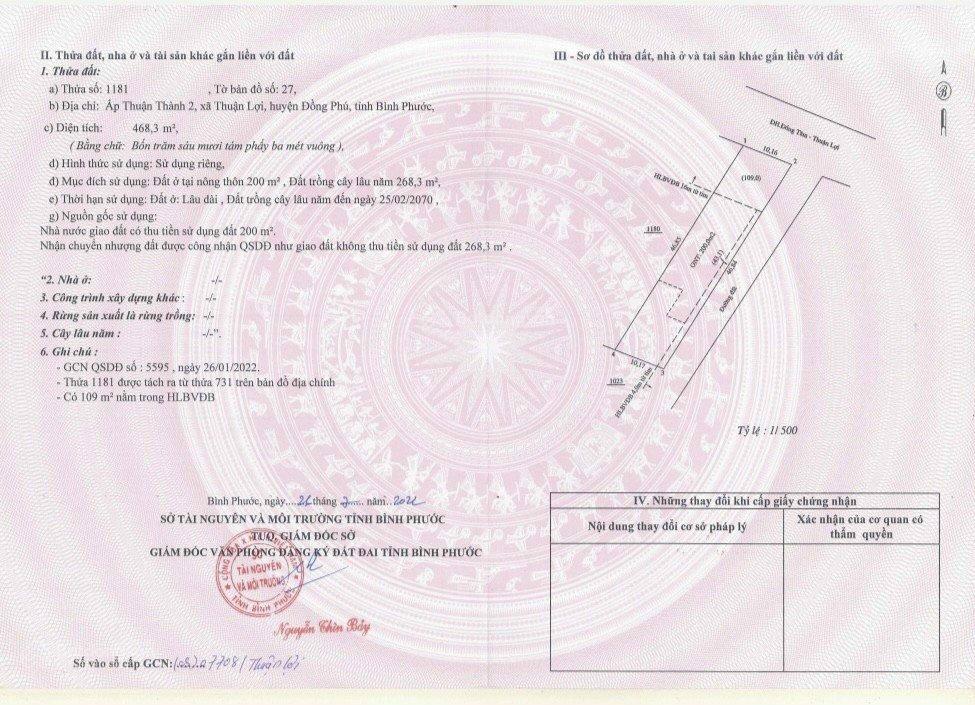 Cần tiền về quê ăn Tết bán gấp đất KCN Đồng Phú 240m2 đường 32m SHR giá 848tr tặng 1 cây vàng SJC