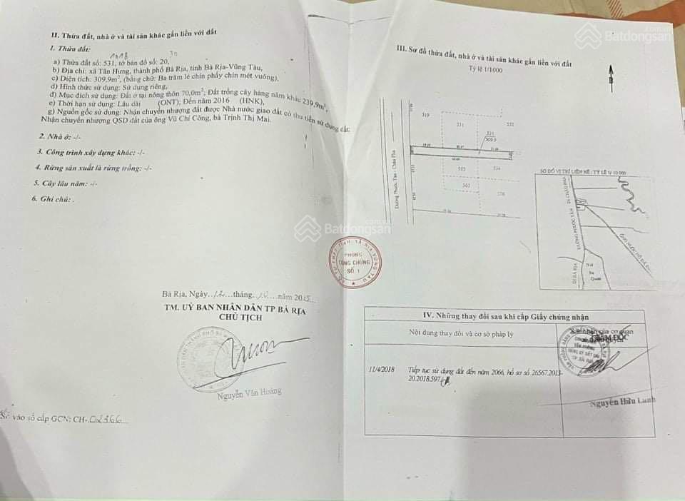 Bán 5200m2 đất chính chủ, mặt tiền 13m đường Lê Trọng Tấn, Tân Hưng, TP Bà Rịa, giá 46 tỷ