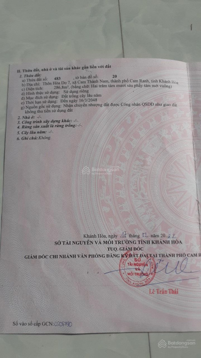 Bán lô đất sau lưng trường Lương Thế Vinh, xã Vĩnh Thạnh, tp. Nha Trang. DT: 255m2 giá 3,8tỷ