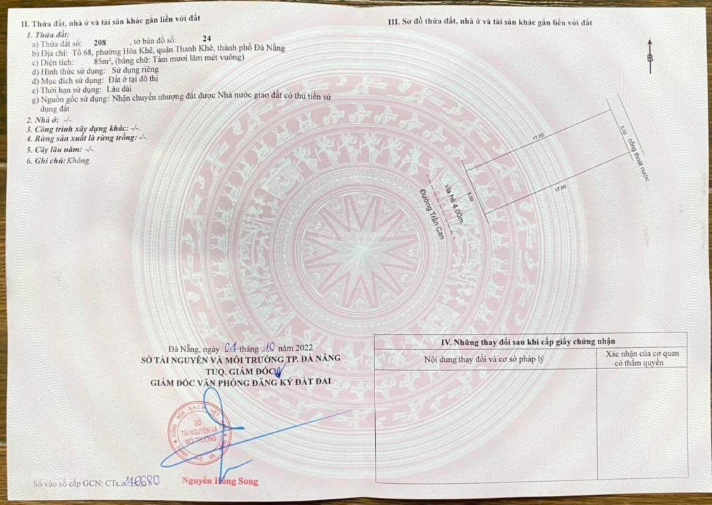 Chính chủ bán đất đường 7,5m Trần Can, khu sư đoàn 372 tại Phường Hòa Khê, Thanh Khê, Đà Nẵng