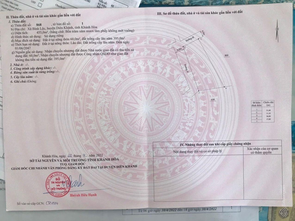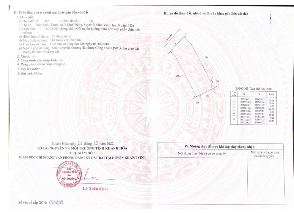 Đất vườn Khánh Đông diện tích 1000m2 giá 650tr