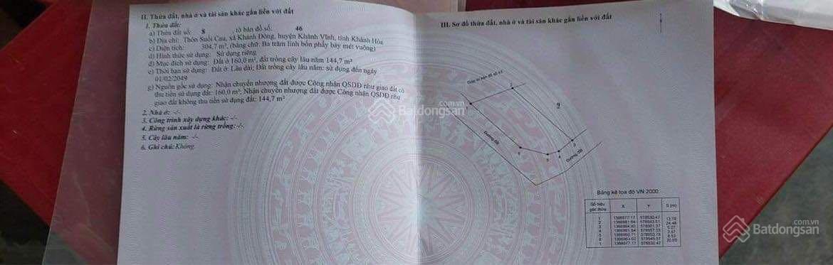 Chính chủ cần bán nhanh lô đất có sẵn 160m2 thổ cư, bám đường 38m Khánh Đông - Khánh Vĩnh