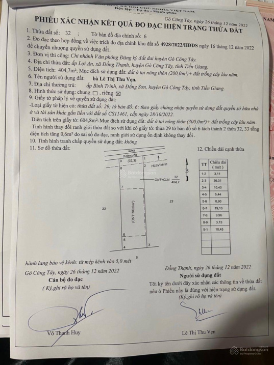 Chính chủ bán đất Đồng Thạnh (10*40m) có 200m2 thổ cư. Đường cặp kênh thông 2 Xã