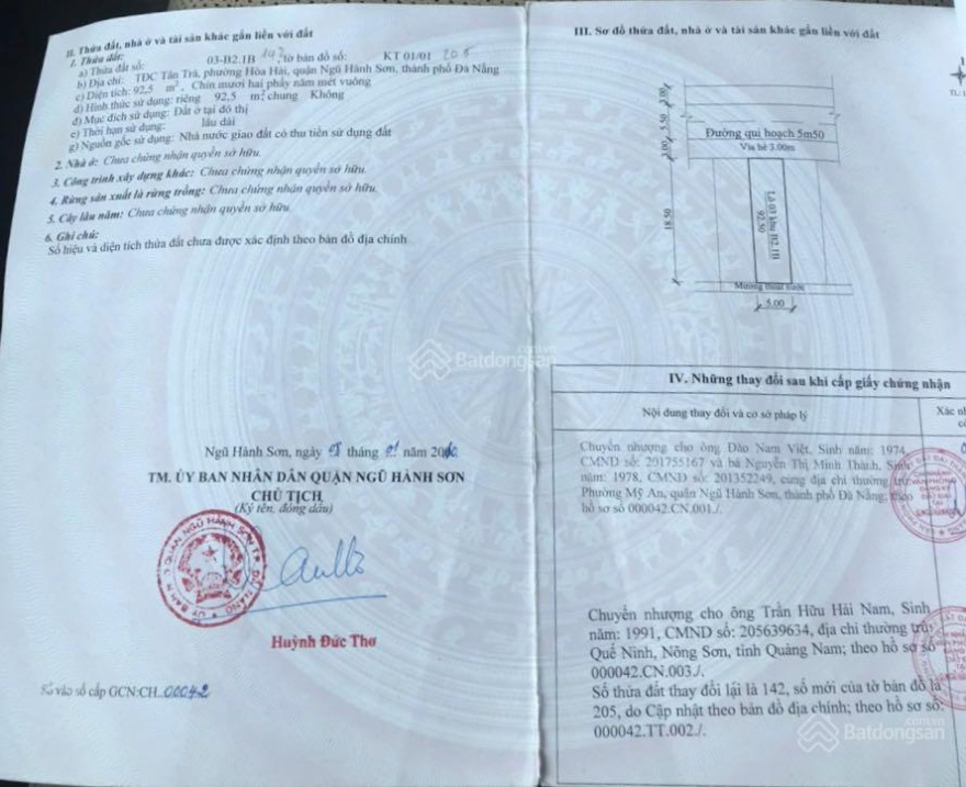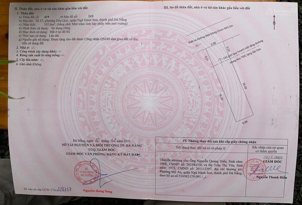 107m2 đường betong 4m quy hoạch mở rộng 7,5m khu dân cư Thị An, Hoà Quý
