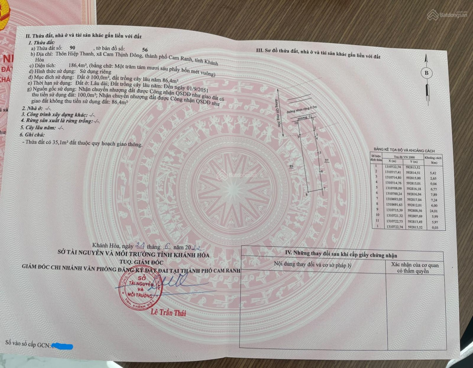 Bán gấp lô đất xã Cam Thịnh Đông - Cam Ranh. Gần dự án KĐT ven vịnh Cam Ranh Vingroup triển khai