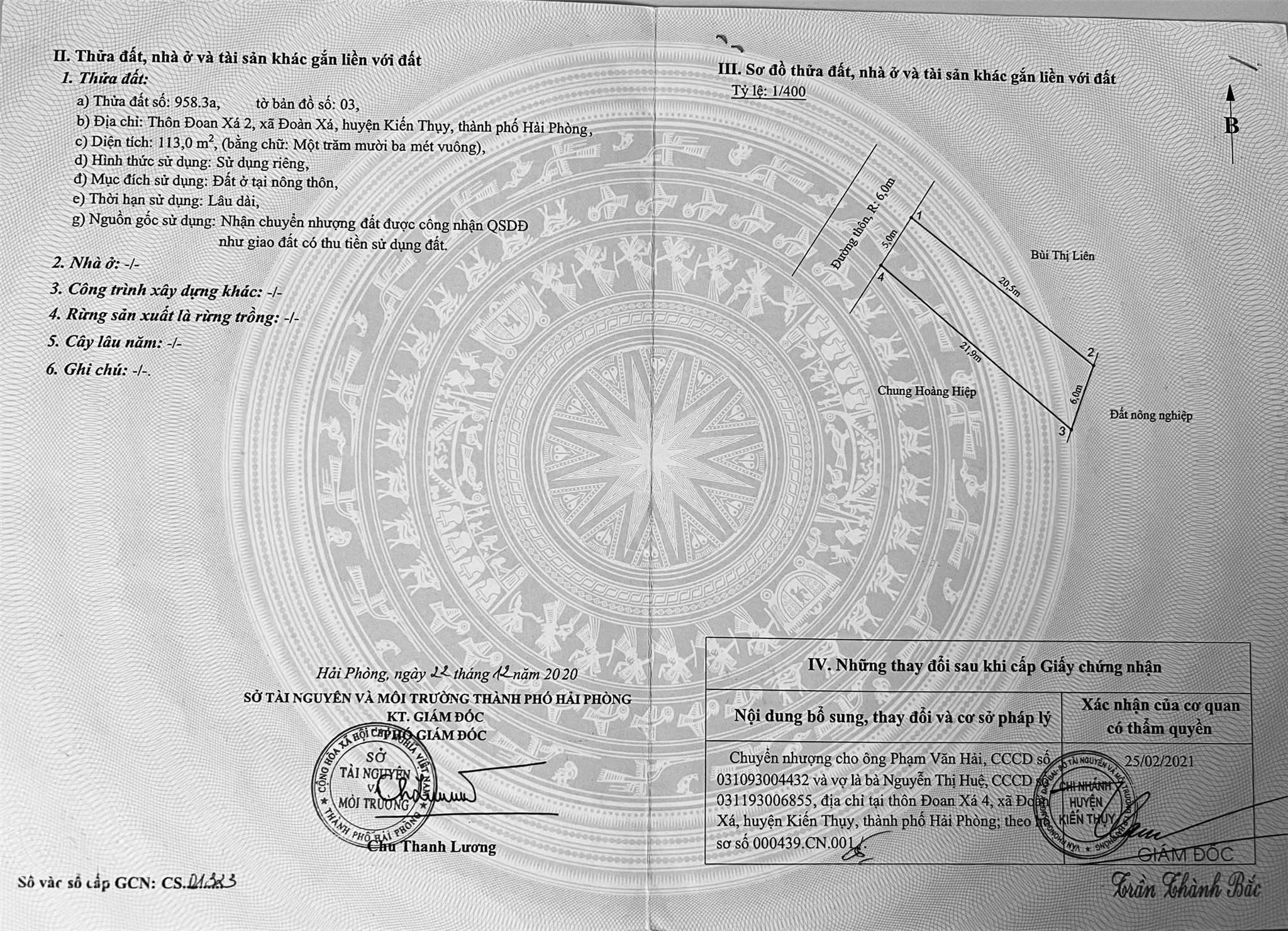 Thông tin khác: 25,X TRIỆU/M² – 2 LÔ ĐOAN XÁ 2 KIẾN THỤY – ĐƯỜNG Ô TÔ – DIỆN TÍCH LỚN HIẾM ZALO 0567 222 555