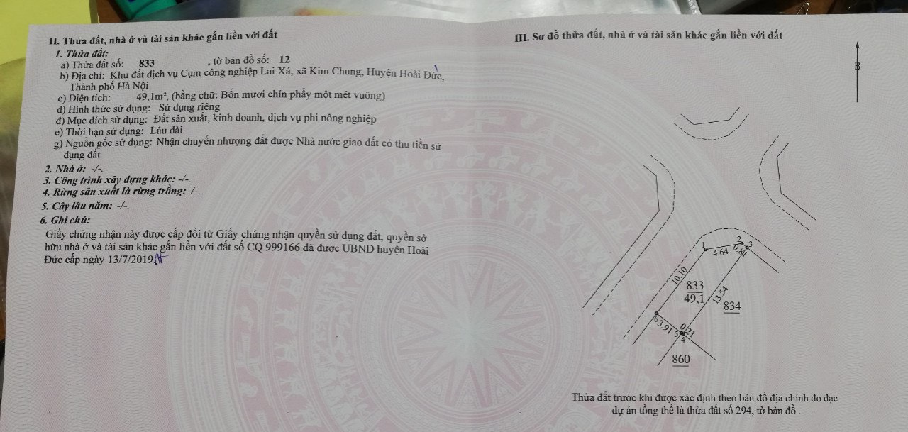 Thông tin khác: 49,1M2 ĐẤT DỊCH VỤ TRŨNG LAI XÁ KIM CHUNG GIÁ RẺ NHẤT