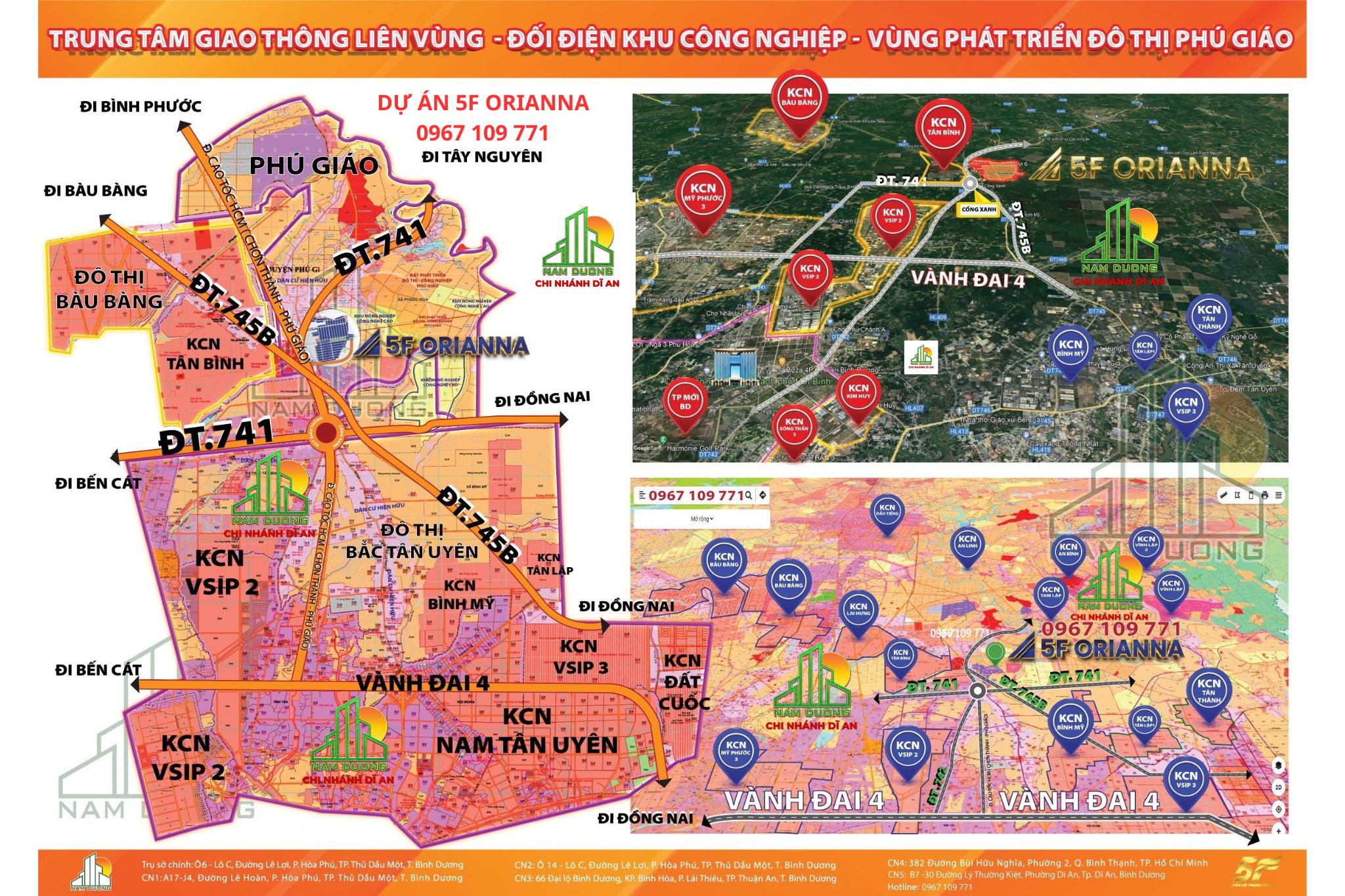 Cụ thể, 5F Orianna – Phương Trường An 6 liền kề một loạt khu công nghiệp lớn gồm Tân Bình 1.000ha, VSIP 2 mở rộng 1.700ha, VSIP 3 hơn 1.000ha, đô thị đại học Cổng Xanh 630ha… Đây chính là khu vực đang thu hút làn sóng đầu tư mạnh mẽ nhất của Bình Dương, tạo cơ hội vươn tầm bứt phá cho Phú Giáo nói chung, 5F Orianna – Phương Trường An 6 nói riêng.