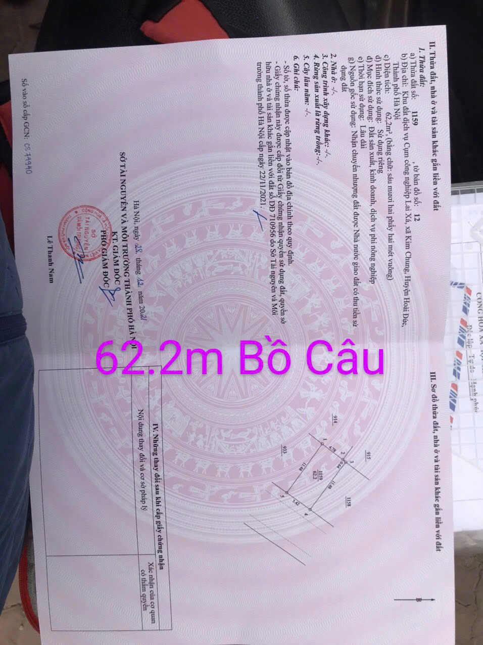 Thông tin khác: 62.2M2 ĐẤT PHÂN LÔ KHU BỒ CÂU CHIẾN SĨ LAI XÁ, KIM CHUNG