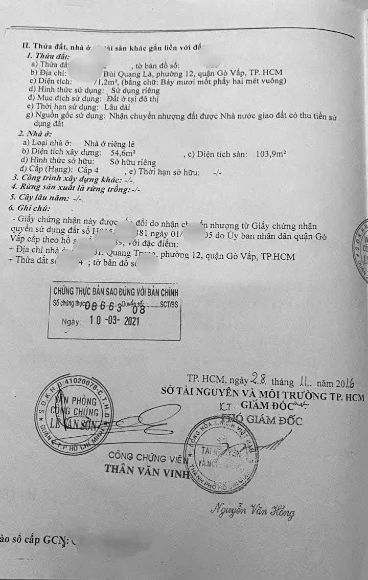 Thông tin khác: 72M2 Thu nhập 265 triệu Bùi Quang Là, P12, Gò Vấp Chỉ 4 Tỷ 29