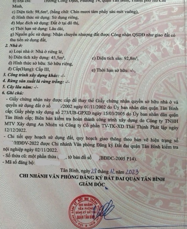 Thông tin khác: 99m2 HXH TRƯƠNG CÔNG ĐỊNH, 3 TẦNG BTCT, 3PN sân thượng nhỉnh 9 tỷ