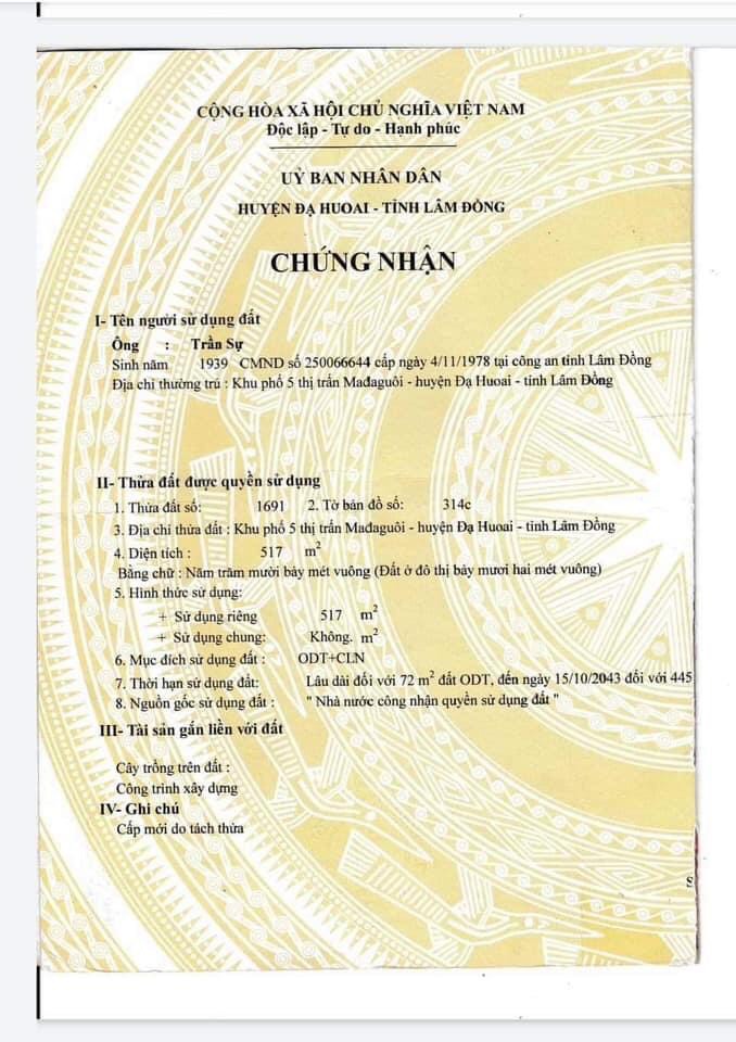 Thông tin khác: BÁN 10 x 52 MẶT TIỀN ĐƯỜNG NGUYỄN DU , TT MADAGUOI ,LÂM ĐỒNG GIÁ ; 3,5 tỷ