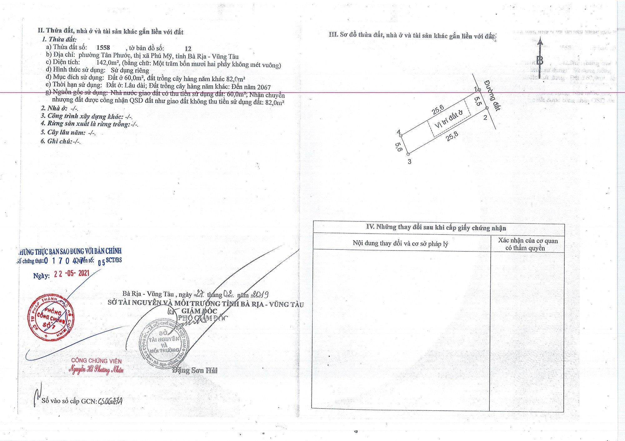 Bán 135m2 đất thổ cư Phường Tân Phước ,TX Phú Mỹ giá nhỉnh 1,4 tỷ ,công chứng ngay