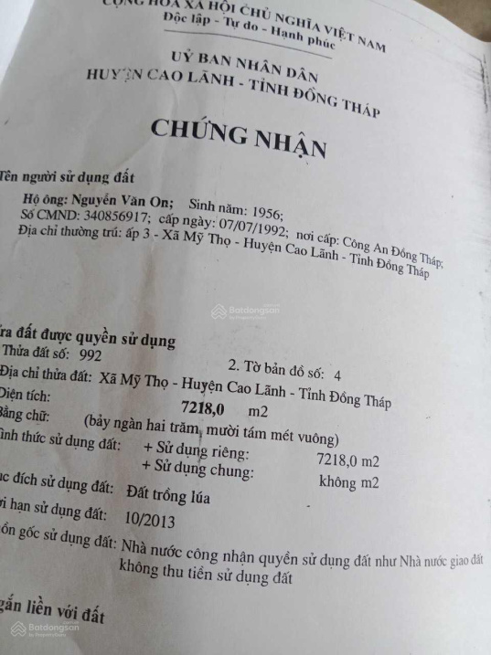 Thông tin khác: Bán 3 công lớn đất ruộng gần chợ Tân Hội Trung, huyện Cao Lãnh; 30 x 120m; 3600m2; 760 triệu