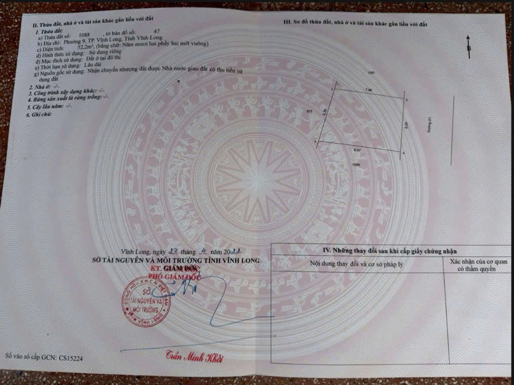 + Lô 2: 52,2 m² (ngang 6,2 m – dài 8,97 m)