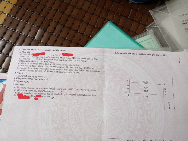 Thông tin khác: Bán 56.8m đất tổ dân phố số 9 Thị Trấn Quang Minh giá 2x( x tiểu học)