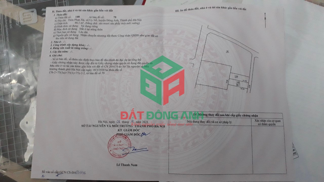 Thông tin khác: Bán 66m2 Phan Xá Uy Nỗ - đường thông ô tô - 4x.