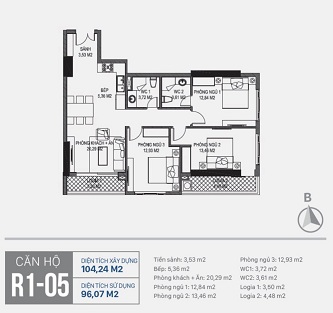 Bán căn góc 3PN, 2WC – 96m² thông thuỷ chỉ 4 tỷ 250 (có sổ đỏ) bao phí.CĂN GÓC TOÀ R1.