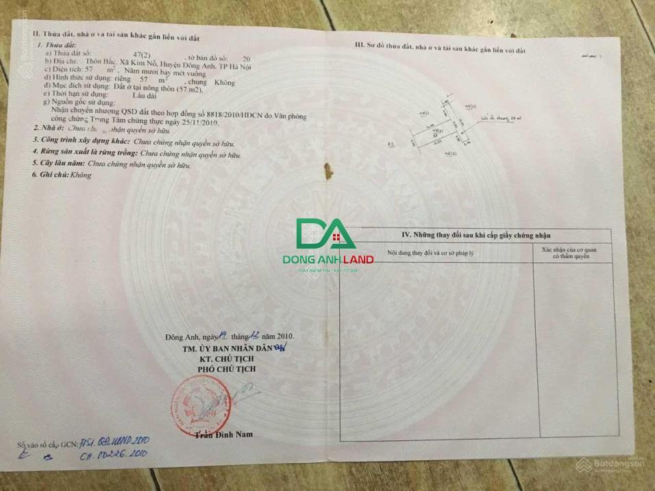 Bán đất 57m thôn Bắc Kim Nỗ Đông Anh giá 1.6x tỷ DONGANHLAND.