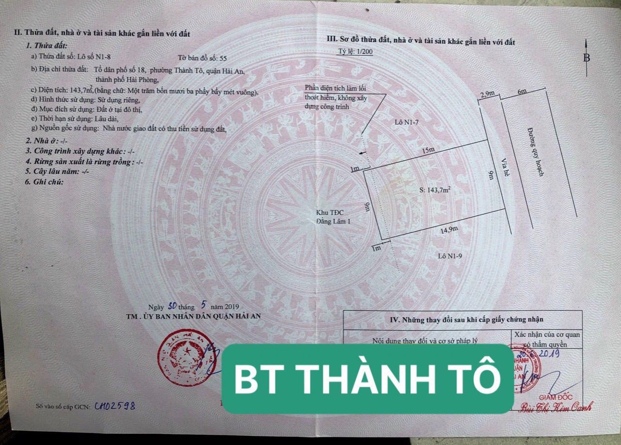 Thông tin khác: Bán đất Biệt Thự cực đẹp diện tích 144m MT 9 m, đường 12m GIÁ 58 tr/m ngay Thành Tô - Hải An