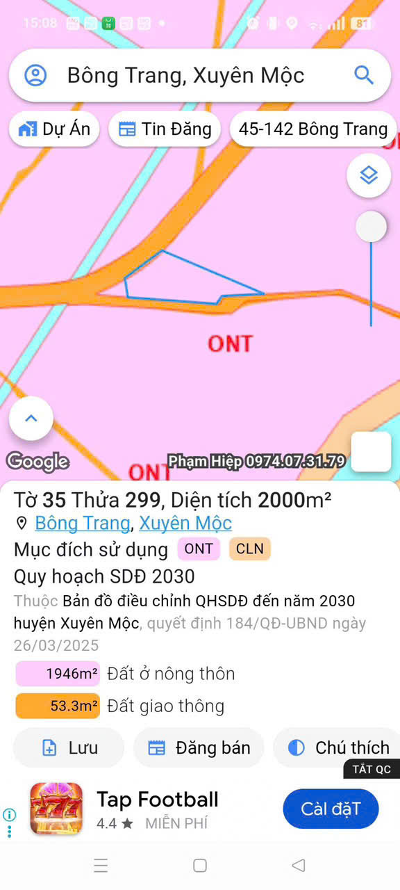 Thông tin khác: BÁN ĐẤT BIỆT THỰ VƯỜN 2 MẶT TIỀN ĐƯỜNG NHỰA HUYỆN XUYÊN MỘC - BÀ RỊA VŨNG TÀU