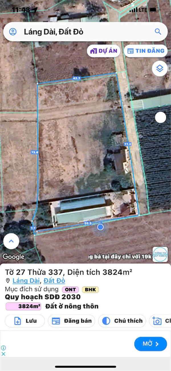 Thông tin khác: Bán ĐẤT CHÍNH CHỦ - GIÁ TỐT - 3824M2 giá 6,2 tỷ Tại Láng Dài, Đất Đỏ, Bà Rịa Vũng Tàu
