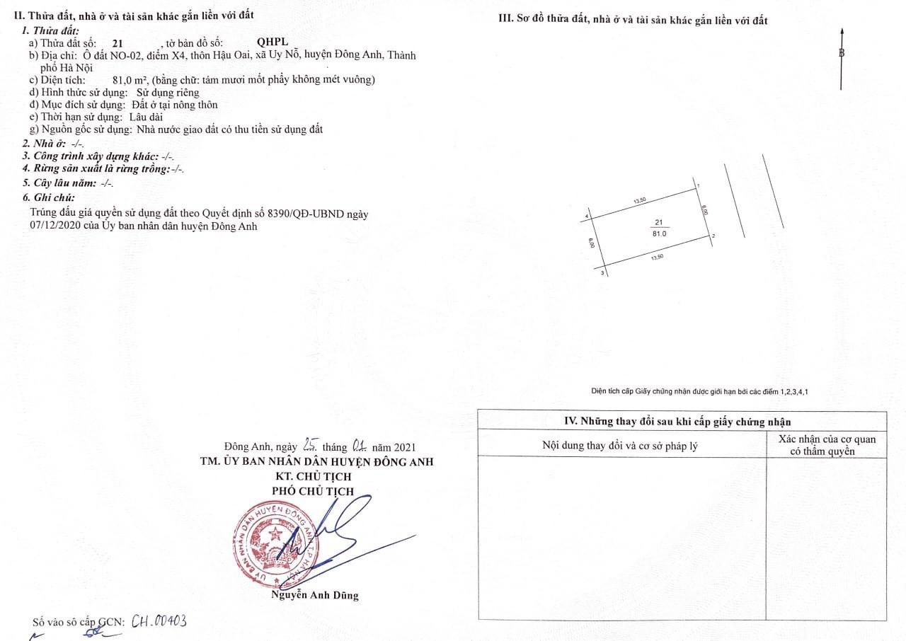 Thông tin khác: Bán đất đấu giá Hậu Oai xã Uy Nỗ Đông Anh mặt đường kinh doanh đỉnh