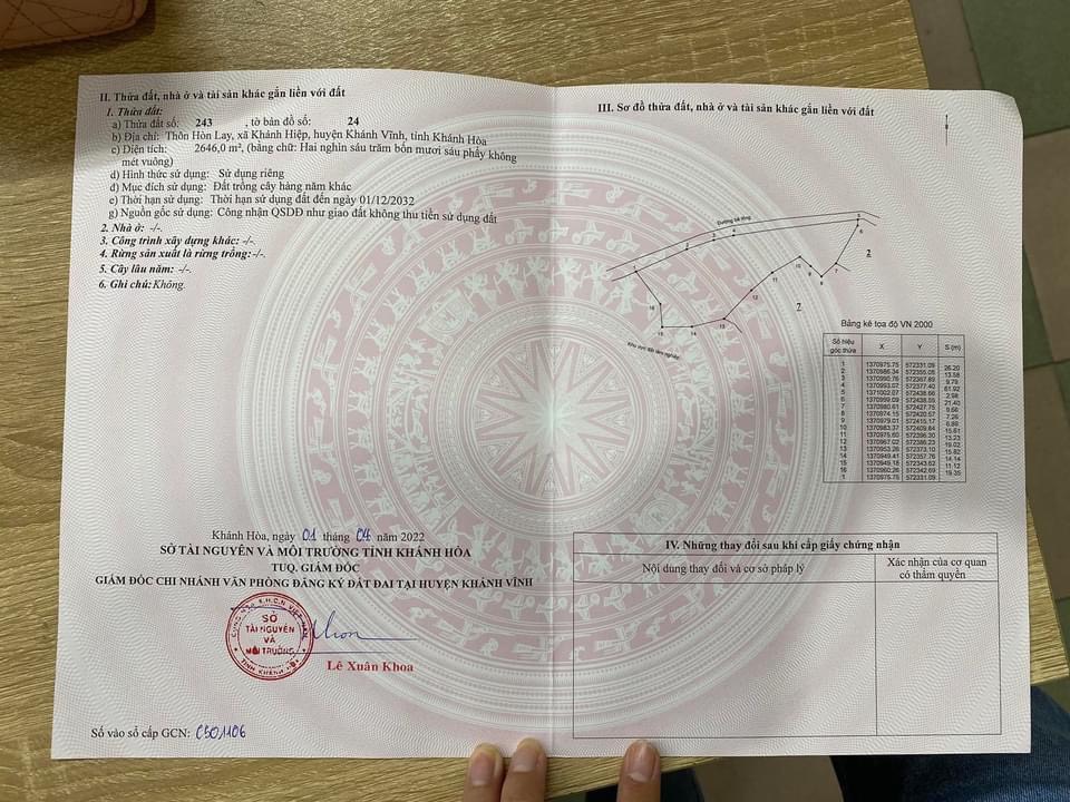 Thông tin khác: Bán đất Khánh Hiệp hơn 2600m2 giá rẻ lập vườn hoặc đầu tư