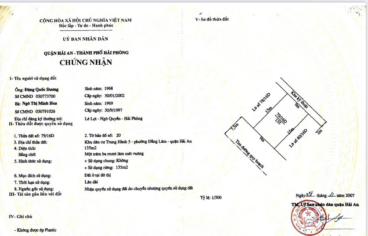 Thông tin khác: Bán đất lô 16 Lê Hồng Phong - 135m - mặt tiền 9m - đường 15 - Giá 105 tr/m