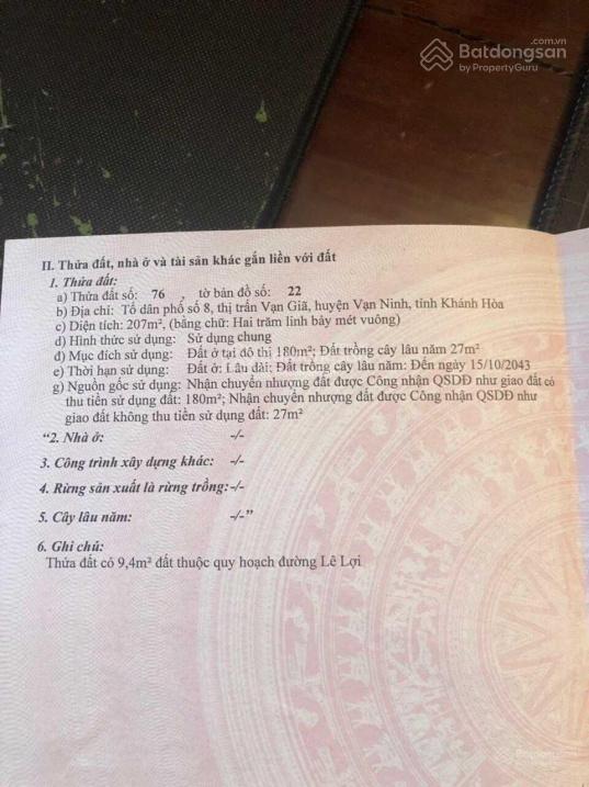 Thông tin khác: Bán đất mặt đường Lê Lợi, thị trấn Vạn Giã - Diện tích 207m2 ngang 6m - Giá 6 tỷ 2