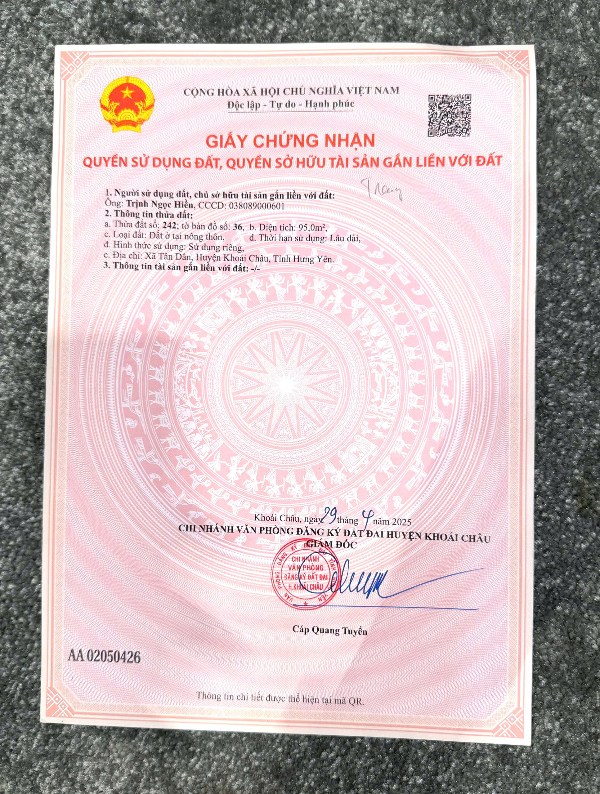 Chính chủ cần bán mảnh đất vị trí đẹp, hiếm tại Tân Dân – Khoái Châu – Hưng Yên, khu vực phát triển mạnh, gần dự án sân golf Donald Trump, tiềm năng tăng giá rõ rệt.