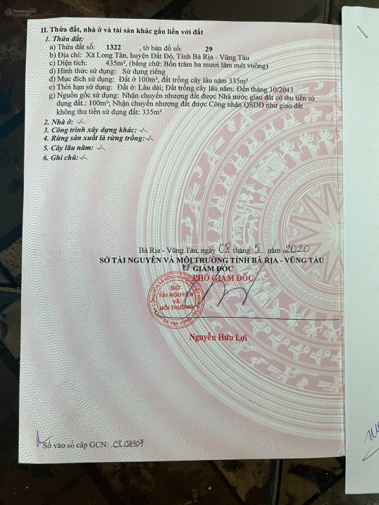 Địa chỉ: Đường 765, Xã Long Tân, Đất Đỏ, Bà Rịa - Vũng Tàu