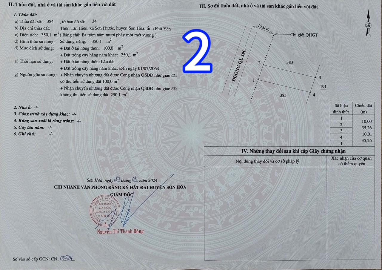 Thông tin khác: BÁN ĐẤT MẶT TIỀN ĐƯỜNG QL 19 SƠN HOÀ PHÚ YÊN