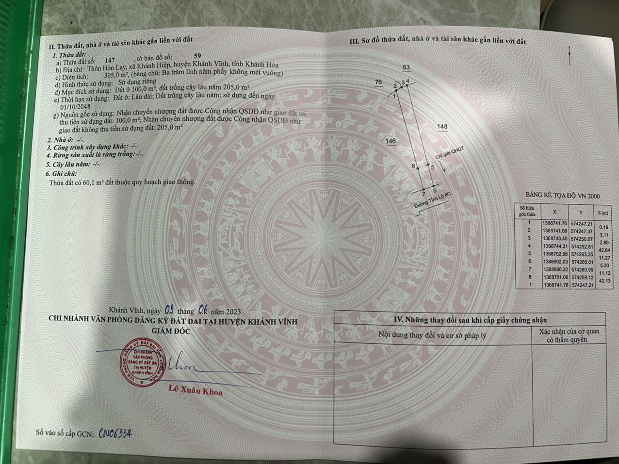 Bán đất mặt tiền Tỉnh Lộ 8C – xã Khánh Hiệp – Khánh Vĩnh.