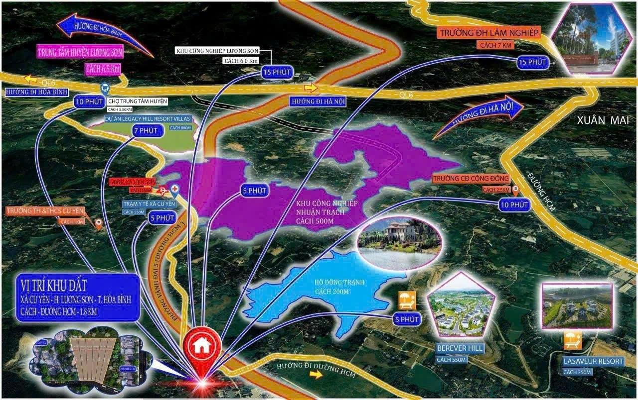 BÁN ĐẤT NỀN LÕI KCN NHUẬN TRẠCH & TRUNG TÂM NGHỈ DƯỠNG CƯ YÊN – LƯƠNG SƠN, HÒA BÌNH –> Giá rẻ F0 chỉ hơn 4 triệu/m2