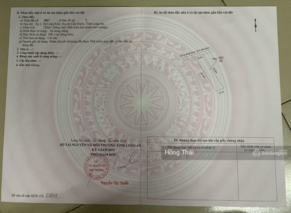Bán đất nền thổ cư xã Long Khê, Cần Đước, Long An.