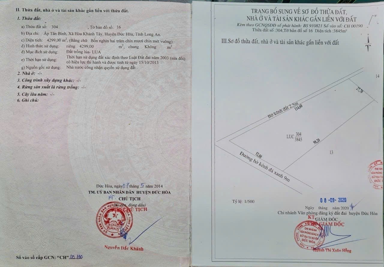 Thông tin khác: Bán đất ở Long An tổng diện tích 2 mảnh 7200 m2 giá 11 tỷ có thương lượng với khách hàng có thiện chí