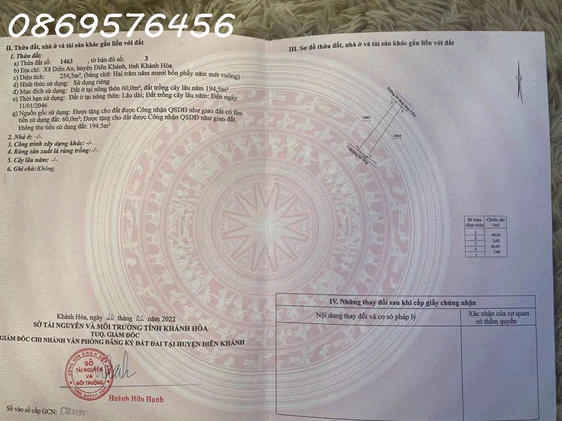 Thông tin khác: BÁN ĐẤT Ở TẠI DIÊN KHÁNH, KHÁNH HOÀ