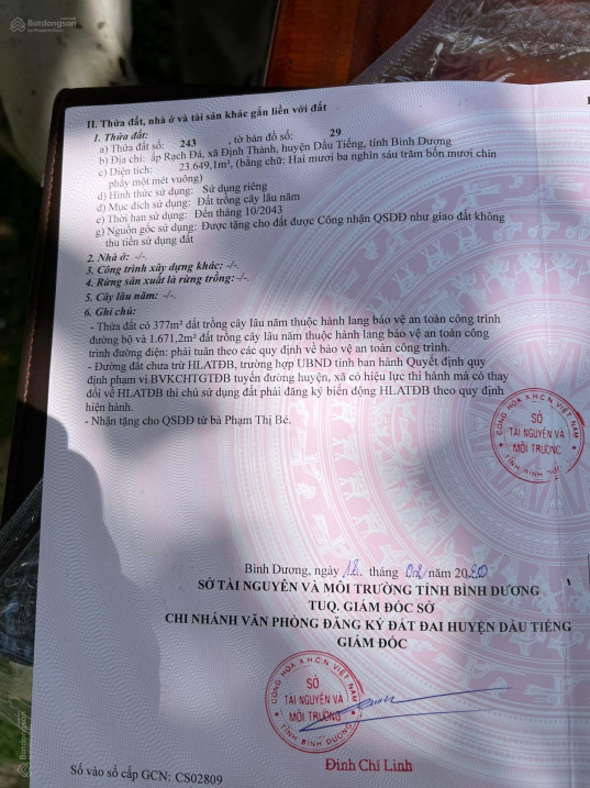 Thông tin khác: Bán đất phân nền 110 x 80m (cây lâu năm) xã Định Thành, huyện Dầu Tiếng, Bình Dương