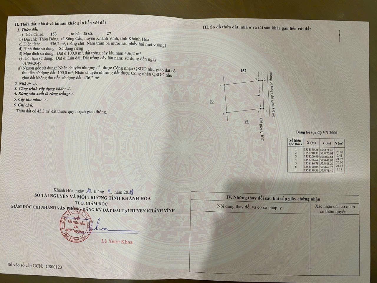 Bán đất Sông Cầu – Khánh Vĩnh có thổ cư đối diện Ủy ban xã.