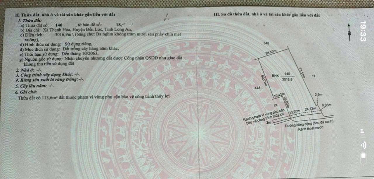 Thông tin khác: Bán đất vườn view kênh xã Thạnh Hòa, Bến Lức dt 3016m2 giá 3,1 tỷ