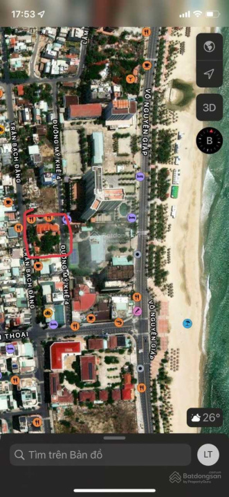 Bán gần 1.800 m2 đất biển Mỹ Khê – Đà Nẵng giá 118tr/m2. Mặt sau đường biển Võ Nguyên Giáp