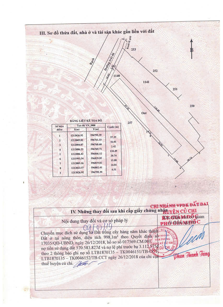 – Mục đích sử dụng: đất ở (full thổ cư: đã chuyển đổi toàn bộ diện tích sử dụng đất và hoàn thành nghĩa vụ thuế từ năm 2019)