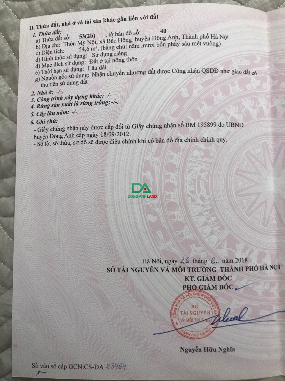 Thông tin khác: Bán gấp 54.6m² đất thôn Mỹ Nội, Bắc Hồng, Đông Anh, Hà Nội