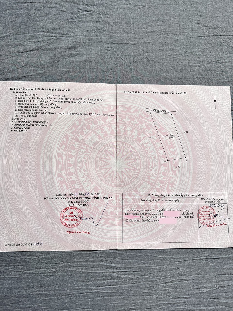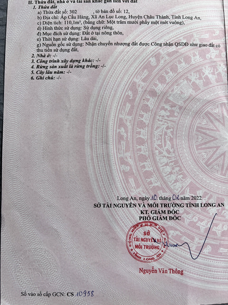 Thông tin khác: BÁN GẤP LÔ ĐẤT 110,1M2 FULL THỔ TẠI XÃ AN LỤC LONG, CHÂU THÀNH, LONG AN. chỉ 500tr