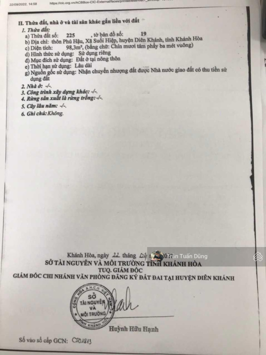Thông tin khác: Bán gấp lô đất Thôn Phú Hậu, Xã Suối Hiệp, Diên Khánh, Khánh Hoà giá rẻ