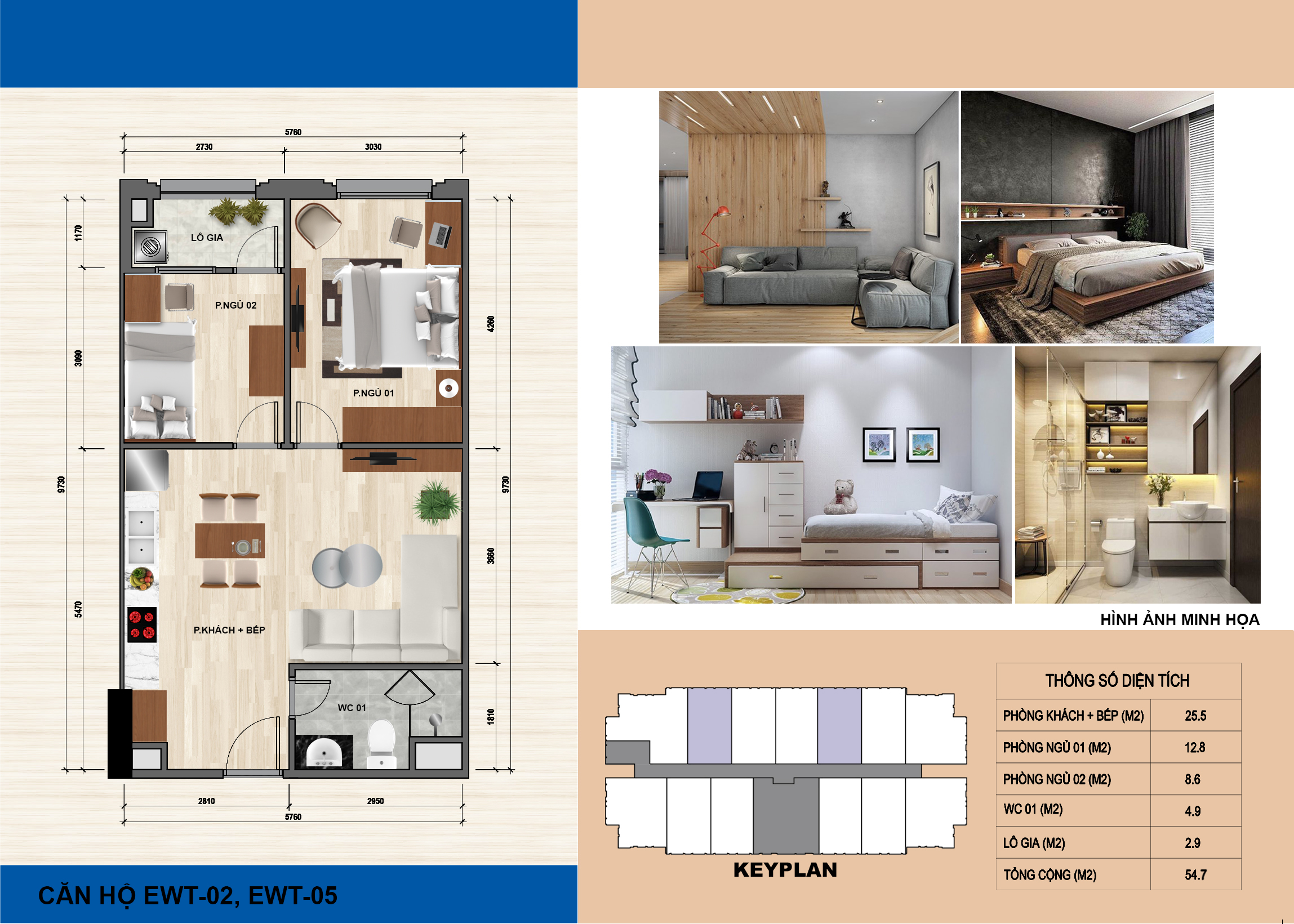 + Diện tích: 53,4 – 160,3m2